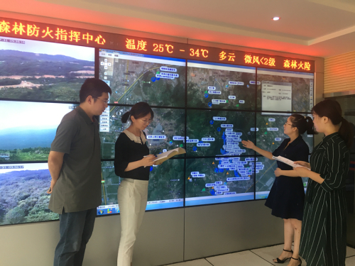 近日,连云港市审计局在实施市林业局原主要领导自然资源资产离任审计过程中,安排审计人员前往该市南云台林场实地查看森林防火指挥中心建设运营及森林防火设施建设情况。经现场查看了解,森林防火指挥中心系统由计算机网络系统、大屏幕信息展示系统、视频会议系统、林火监控系统、地理信息系统等5大指挥保障系统组成,为实现林火远程监控、火险预警、地理信息和数字通信等高科技手段融合,保障森林安全提供了技术支持。图为8月2日,林场工作人员现场为审计人员演示利用地理信息系统进行火情预警。(宋向婷 苗思宇) |