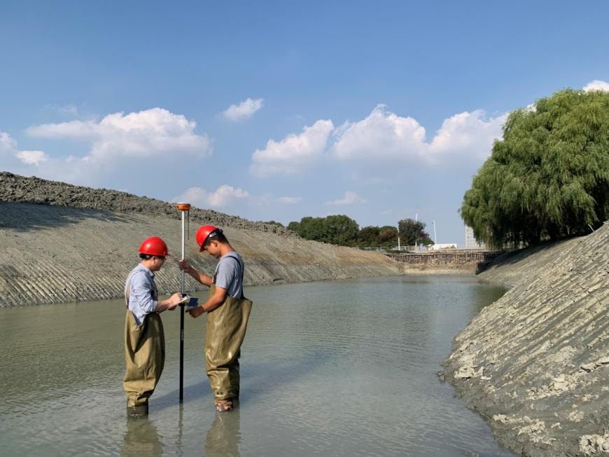 无锡市新吴区审计人员在河道综合整治项目中,深入河道整治现场,对河道进行断面测量复核,及时掌握河道隐蔽疏浚工程的清淤范围、深度和数量,助力提升河道综合整治生态和社会效益。