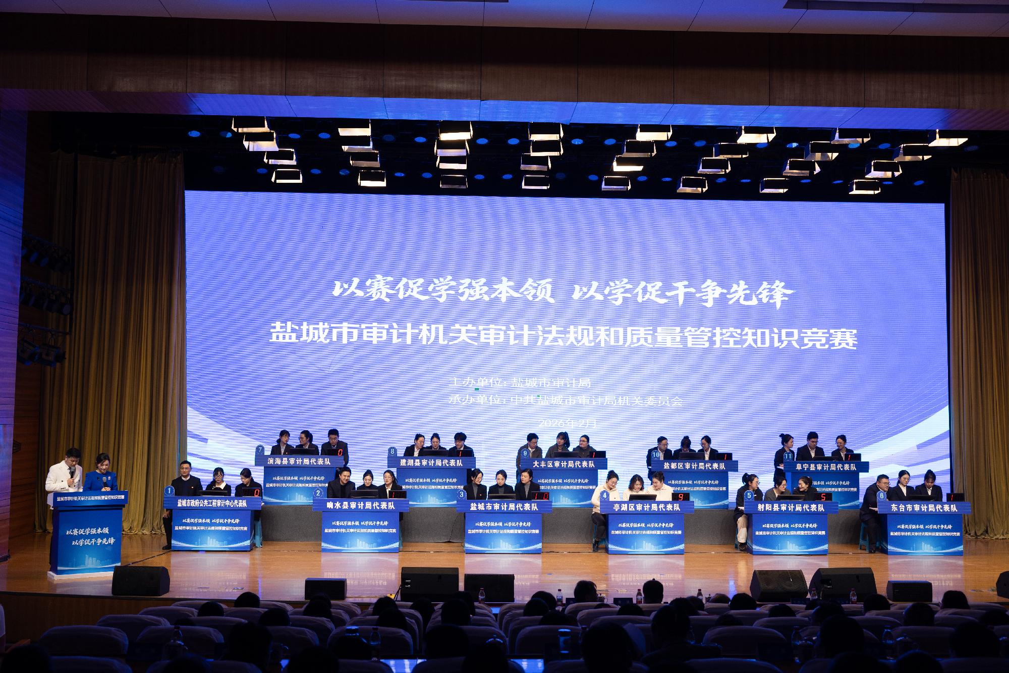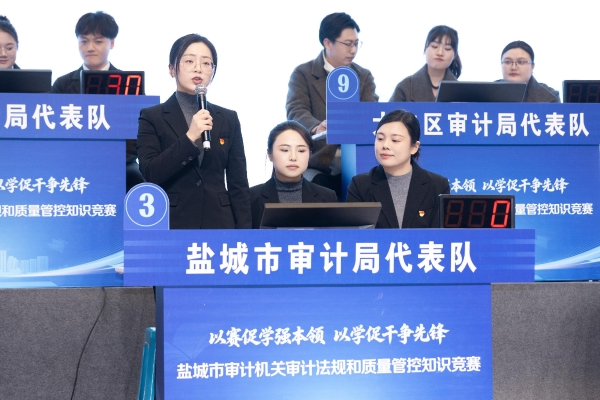 “3、2、1——开始!”随着主持人一声令下,抢答器提示音此起彼伏,赛场紧张气氛瞬间拉满。2月4日下午,盐城市图书馆内掌声、喝彩声不断,全市审计机关审计法规和质量管控知识竞赛在这里火热开赛。来自全市审计系统的11支代表队、33名审计骨干同台比拼,展开一场关于审计法规知识的“速度与激情”的精彩较量。