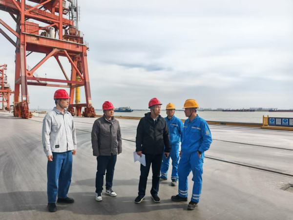 日前,扬州市审计局在全市大气污染防治专项审计中,坚持问题导向,聚焦重点行业,在梳理分析扬州市环境质量公报基础上,深入高能耗、高污染、高排放企业开展实地审查,排查问题短板,为进一步减少污染排放、改善空气质量保驾护航。图为审计人员在长江沿线码头查看抑尘政策落实情况。(周全)